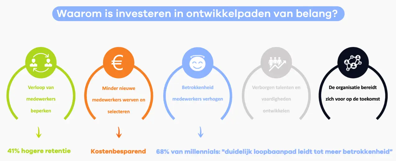 Door deze drie bewust te combineren, ontstaat een helder en samenhangend ontwikkelpad waarmee medewerkers actief regie kunnen nemen over hun loopbaan. Zo wordt ontwikkeling geen abstract begrip, maar een concrete, actieve keuze die zij zelf vormgeven.